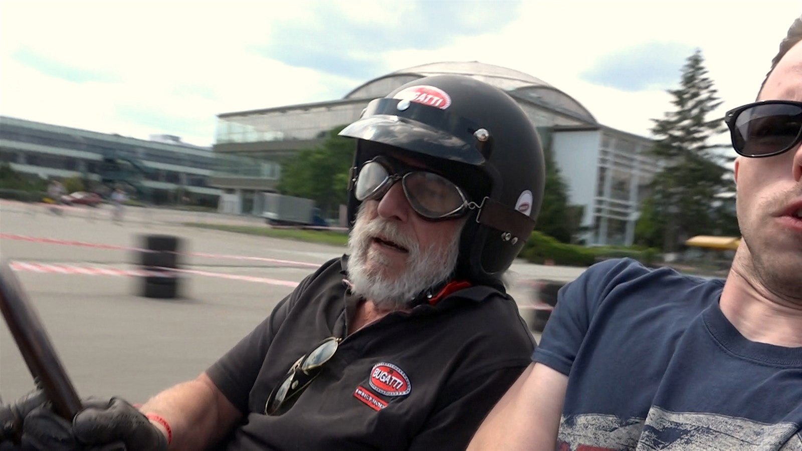 Helge Haug je v Česku známý, na veteránských akcích se objevuje často. Jeho červené Bugatti T40 má úžasnou patinu. A Helge s ním jezdí jak o život. Bílými vlasy, plnovousem a nedbalou elegancí připomíná mistry volantu minulosti. Ale když se posadí za volant, je z něj rtuťovitý mladík.