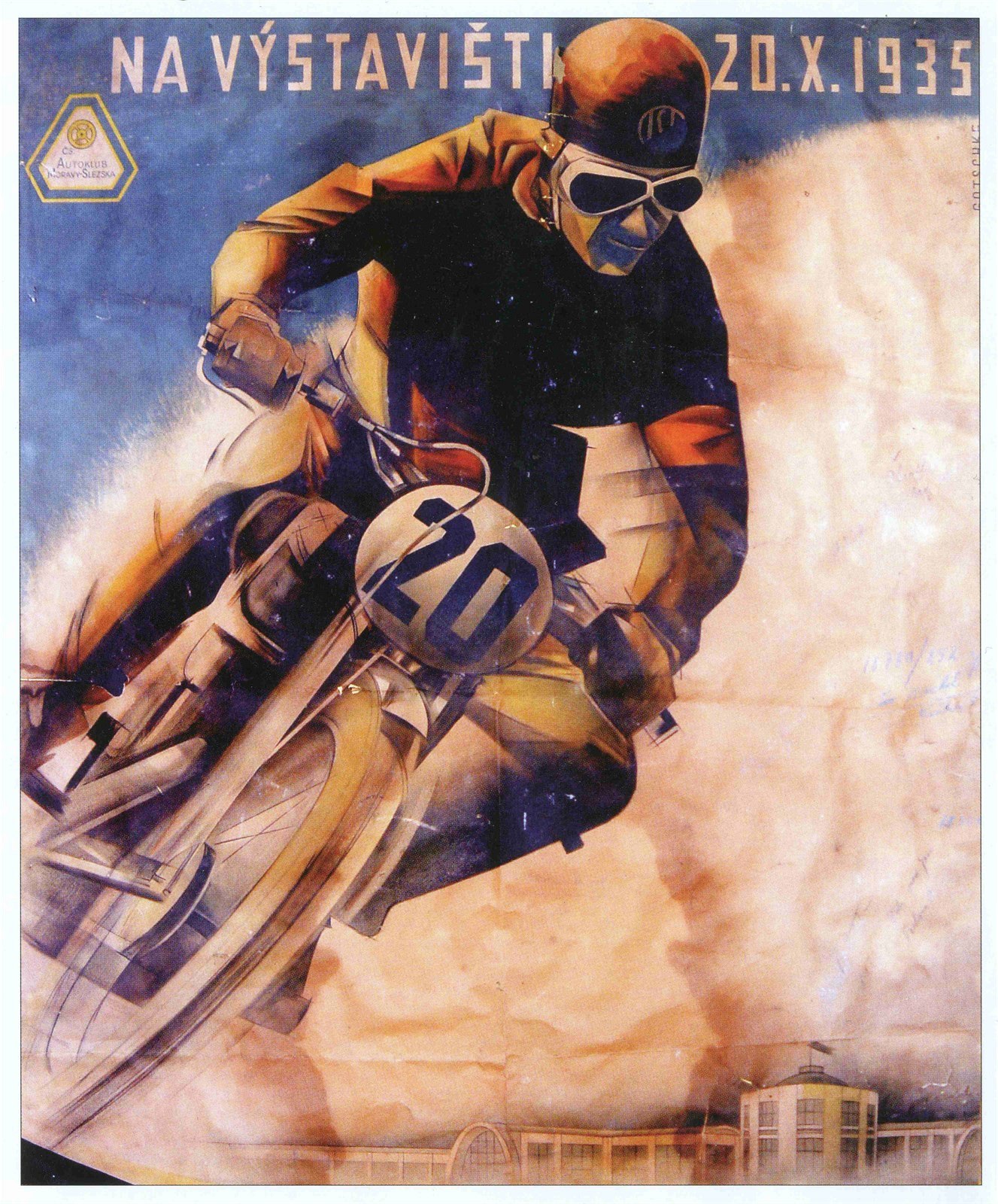 Plakát zvoucí na první motockylový závod, který se na brněnském výstavišti jel v roce 1935.
