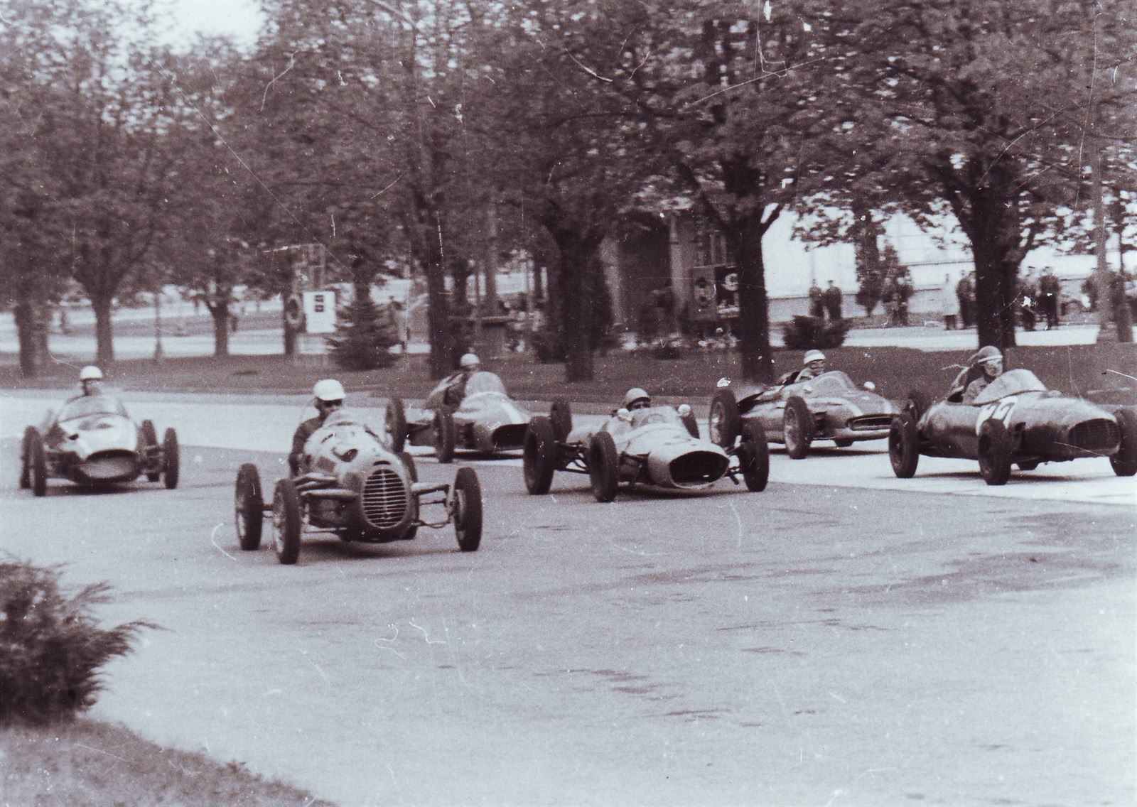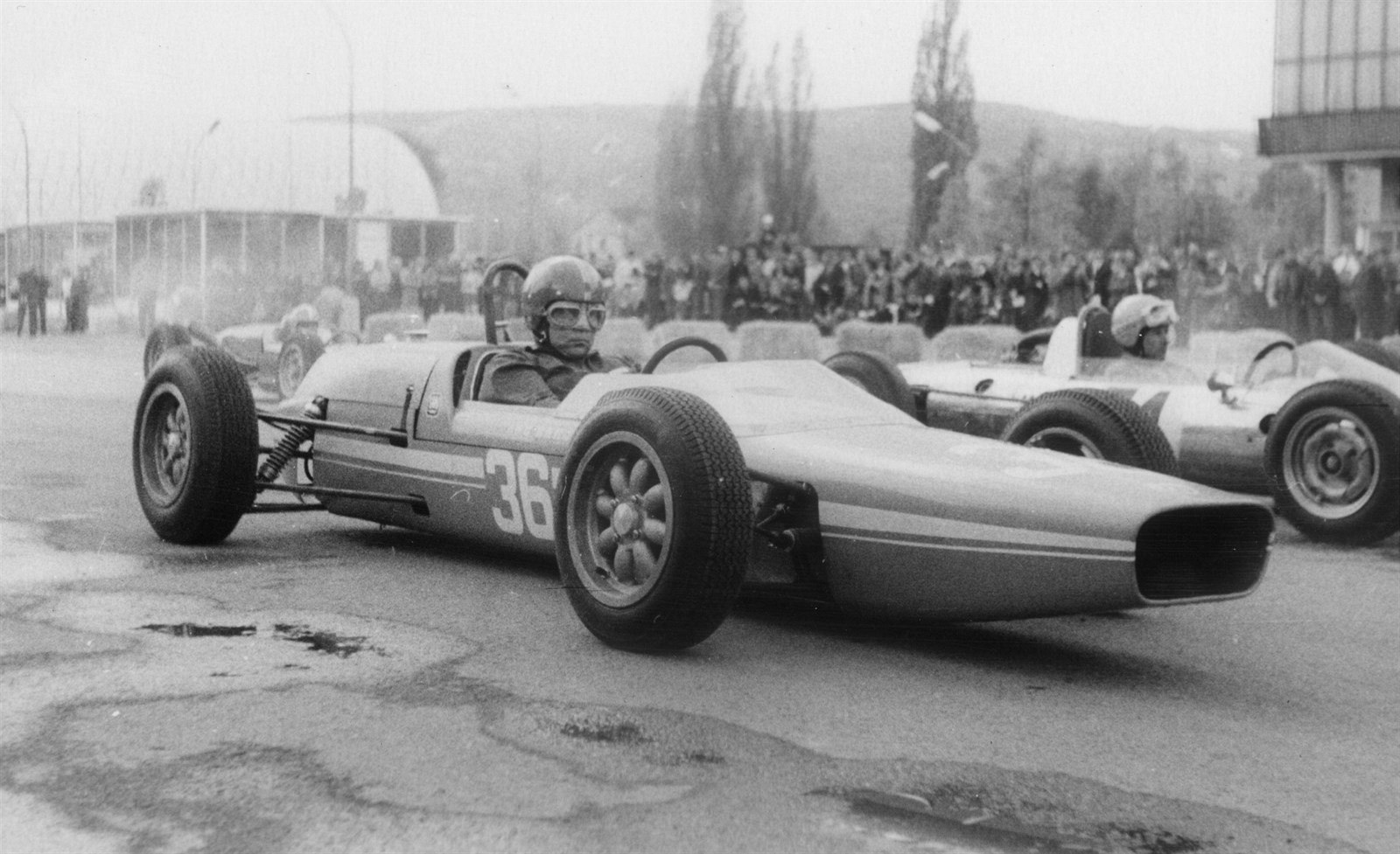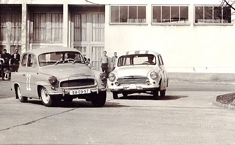Na prvním místě Škoda 1100 OHC, za volantem Václav Bobek starší. V roce 1961 odstartovala zlatá doba závodů na brněnském výstavišti. V pozadí přihlíží dodnes stojící věž u pavilonu G.