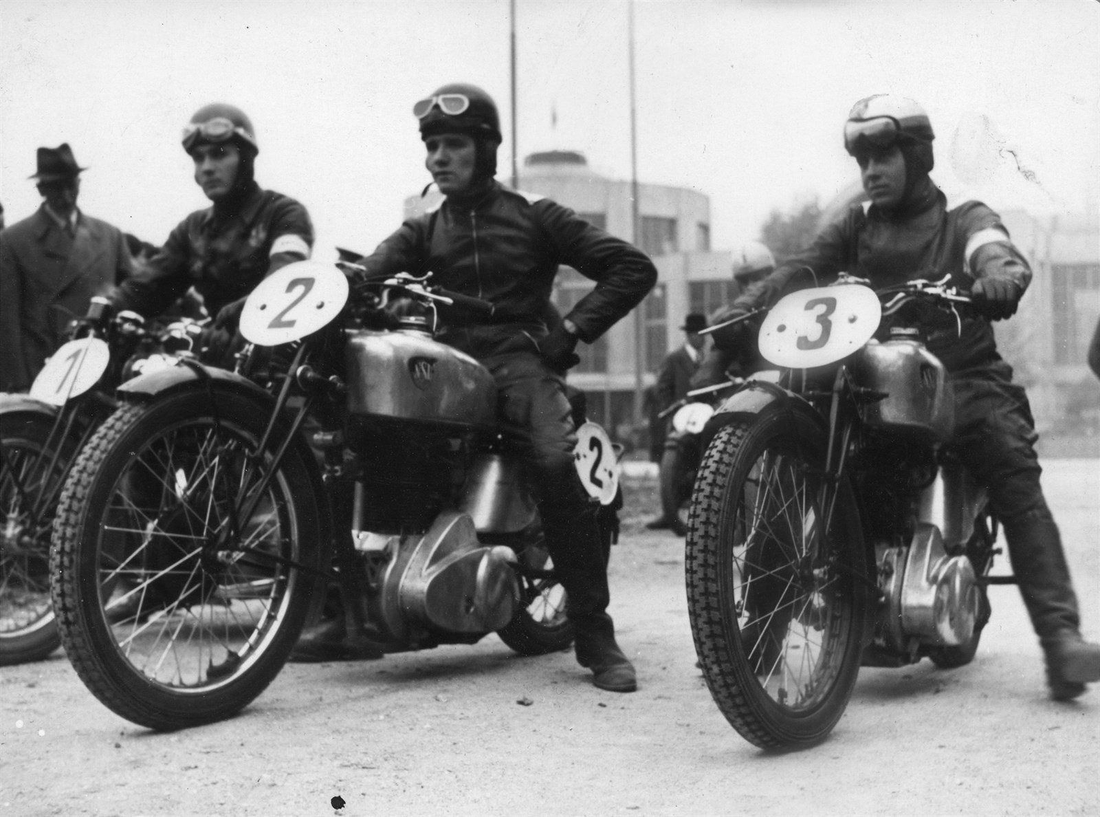 Nejstarší zmínka o motocyklových závodech na brněnském výstavišti pochází z roku 1935. Za závodníky na motocyklech NSU se vypíná rotunda dnešního pavilonu A.