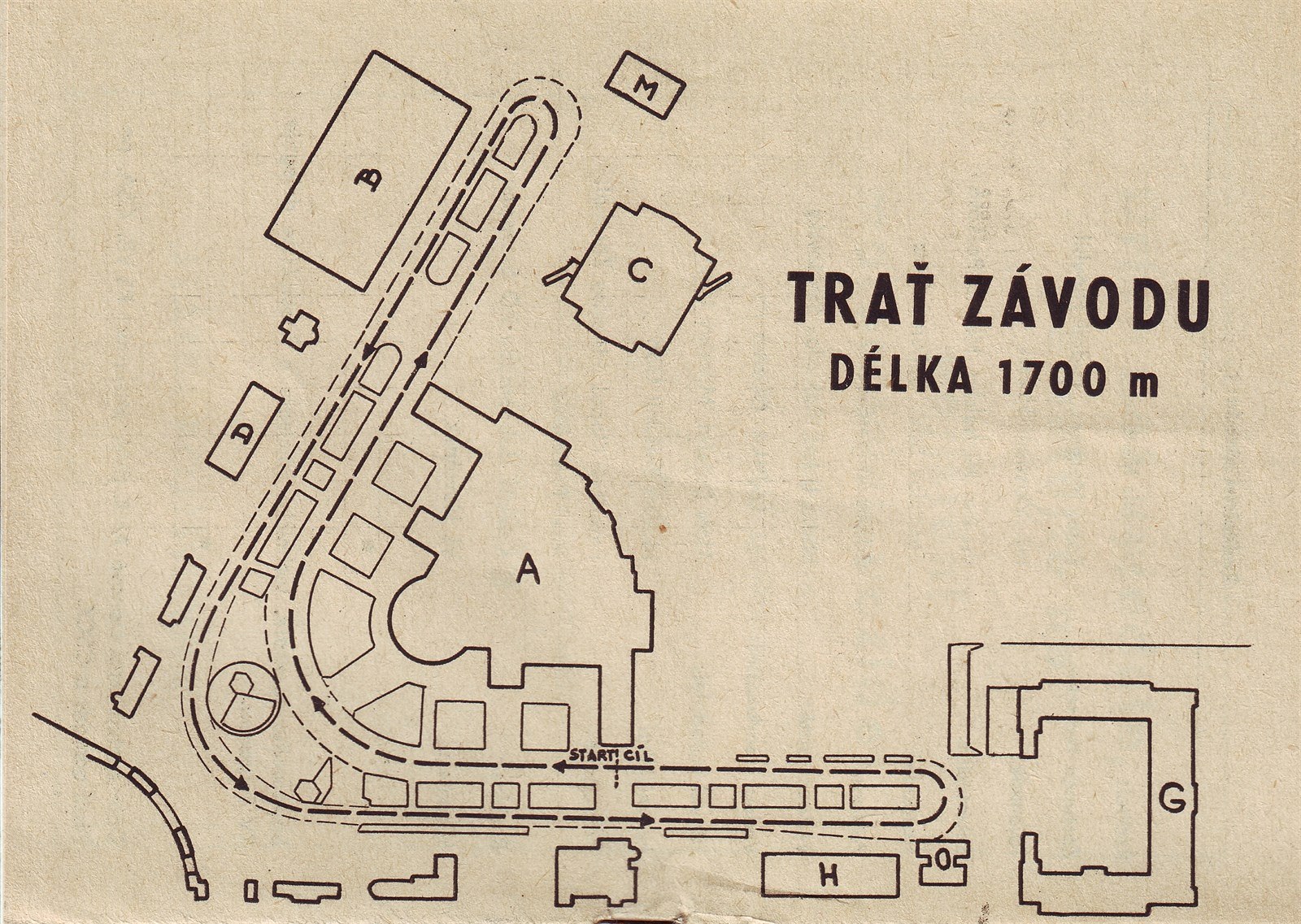 Takto vypadala jednoduchá trať závodů v 60. letech. Po půlstoletí se letos pojede v téměř nezměněné podobě, jen „horní“ rameno bude asi o 100 metrů kratší kvůli přejezdu kolejí železniční vlečky.