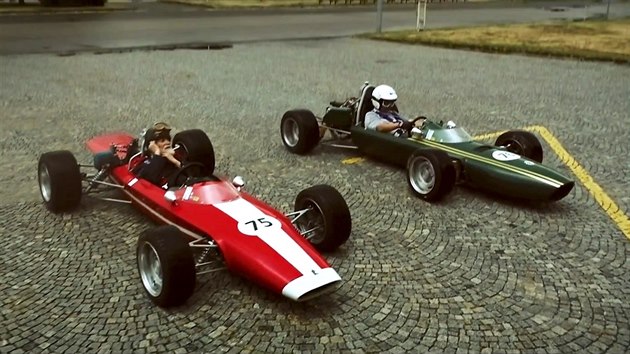 Souboj na čele závodu v roce 1967 - na čele je Vladimír Hubáček na Melkusu, za ním jako stín pozdější vítěz závodu Jaroslav Bobek s monopostem Škoda F3.