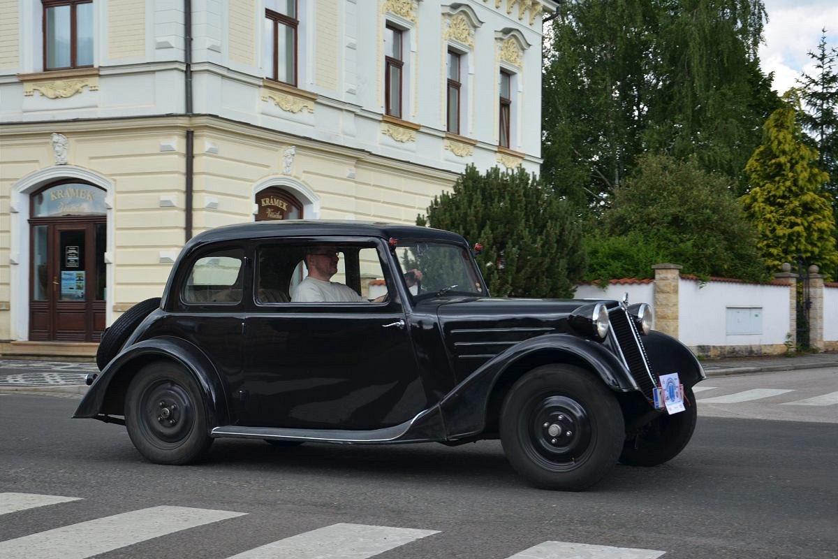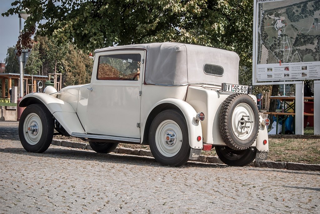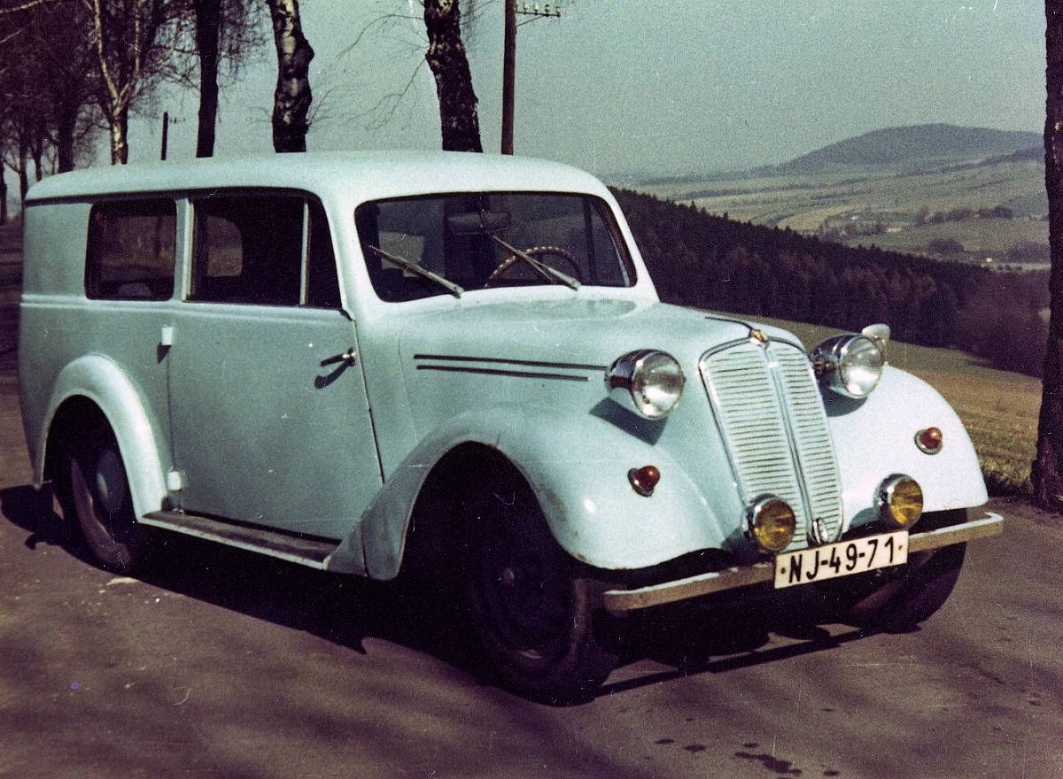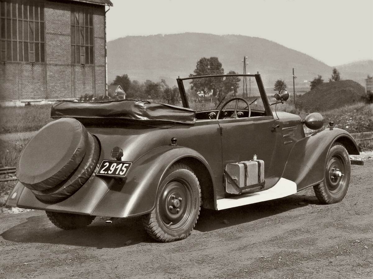 Tatra 57b, oproti áčku například přibylo víko malého zavazadlového prostoru na zádi (zároveň se dovnitř přesunula rezerva)
