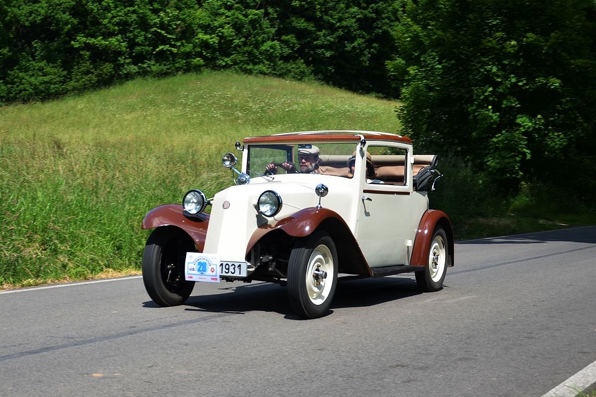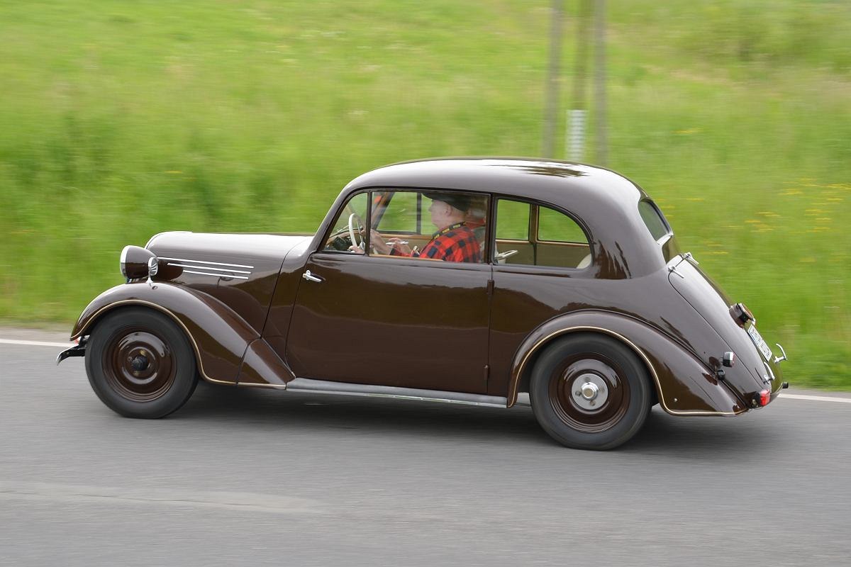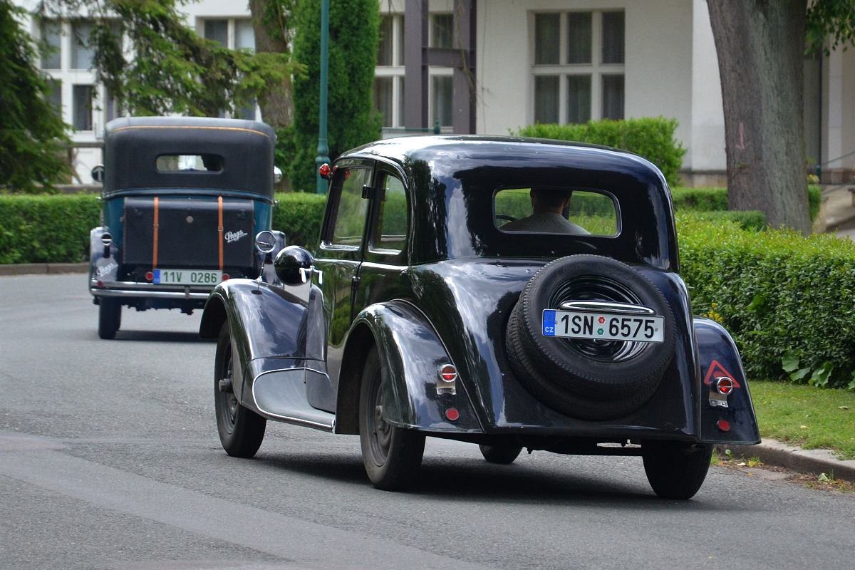 Tatra 57b, oproti áčku například přibylo víko malého zavazadlového prostoru na zádi (zároveň se dovnitř přesunula rezerva)