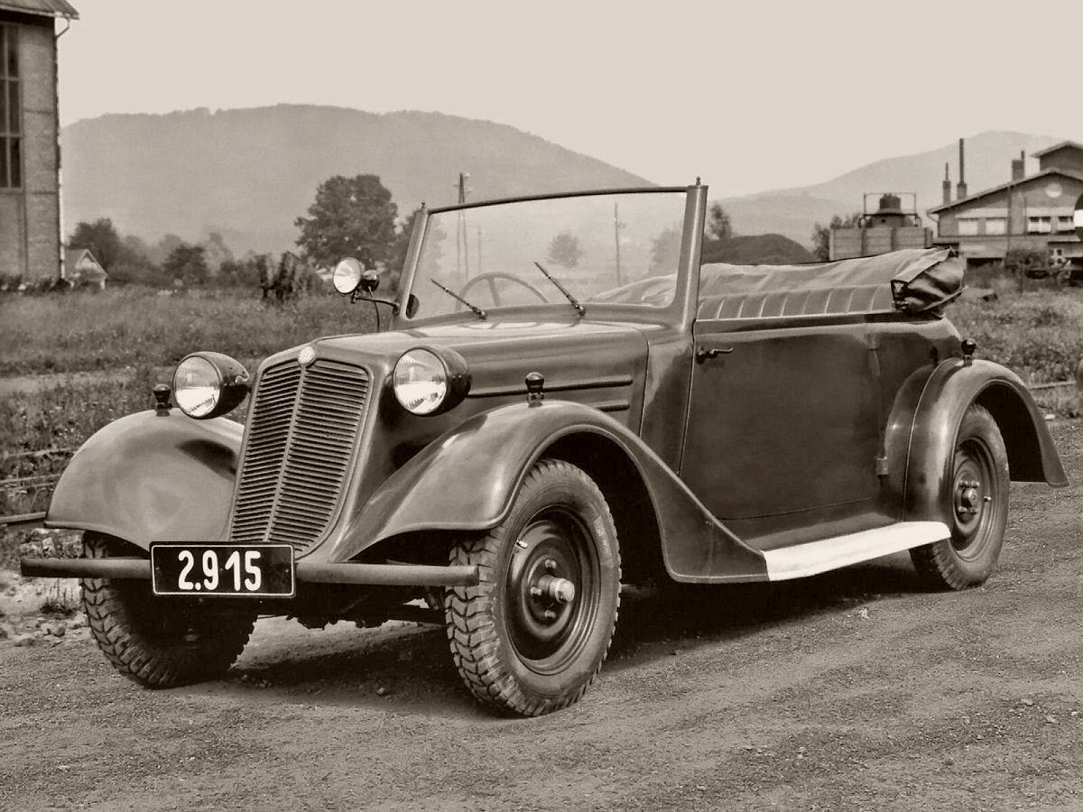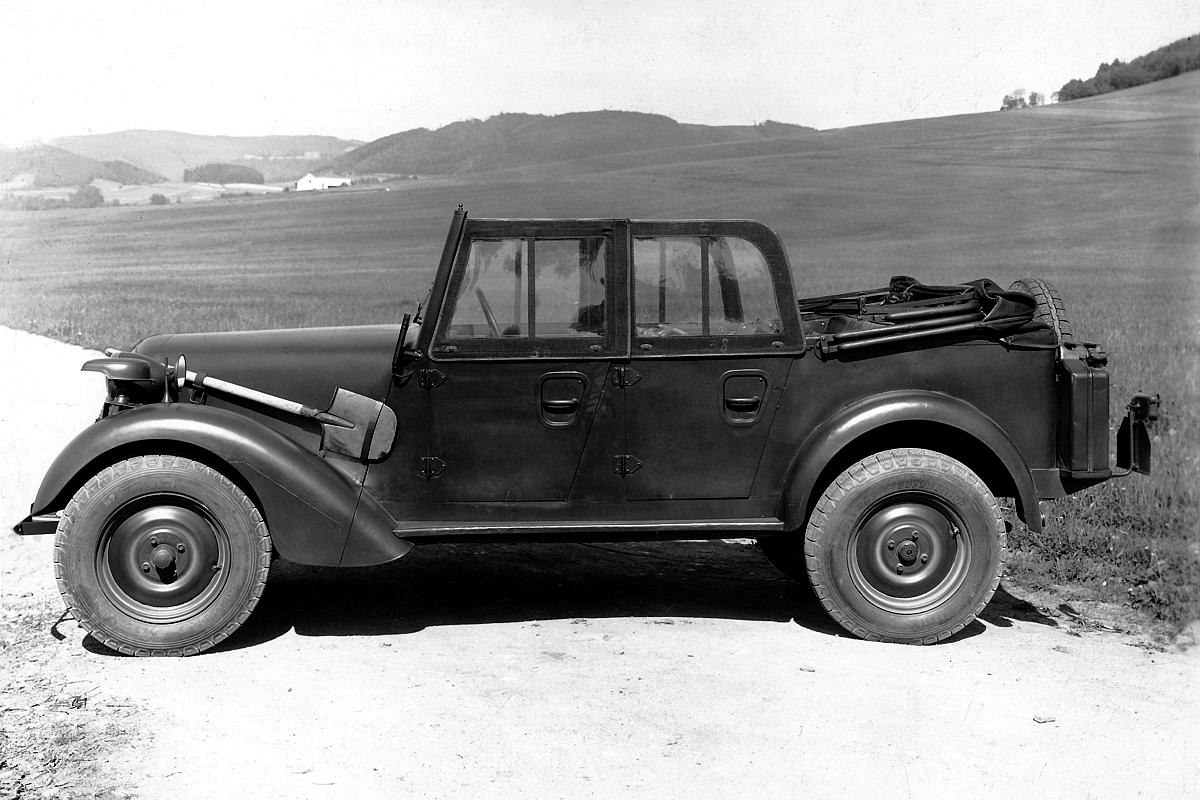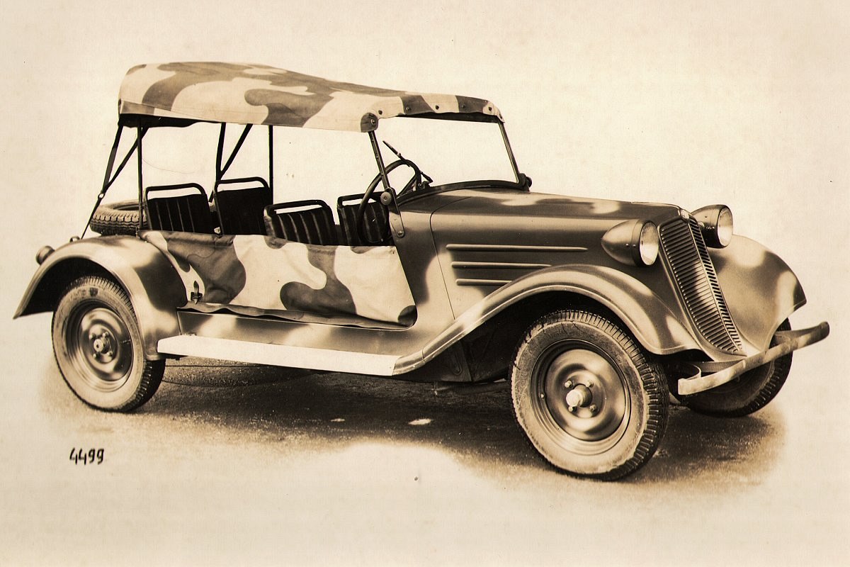 Tatra 57K (Kübelwagen), zajímavý je i výjev startu glajtra gumicukem na svahu za automobilem.