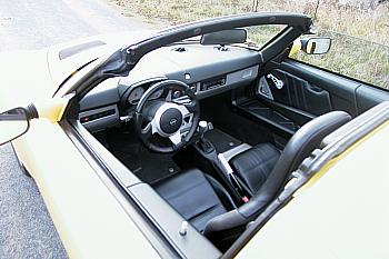 INTERIÉRInteriér nenabídne žádný luxus, nalezneme zde jen to nejnutnější. Speedster není vybaven klimatizací ani posilovačem řízení, vše je řešeno tak, aby byla hmotnost vozu co nejnižší a sportovní zážitek co největší.