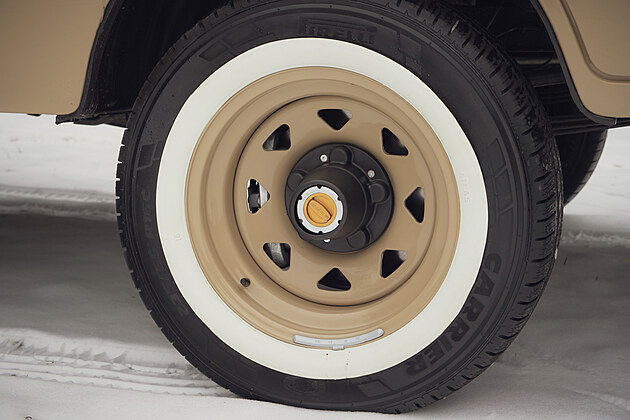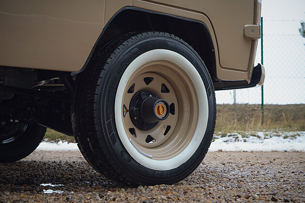 Terénní kola R16 jsou osazená pneumatikami 235/65 R16 s bílým lemem, doplněná středovými krytkami a předními volnoběžnými náboji kol, které pomáhají snížit spotřebu paliva.