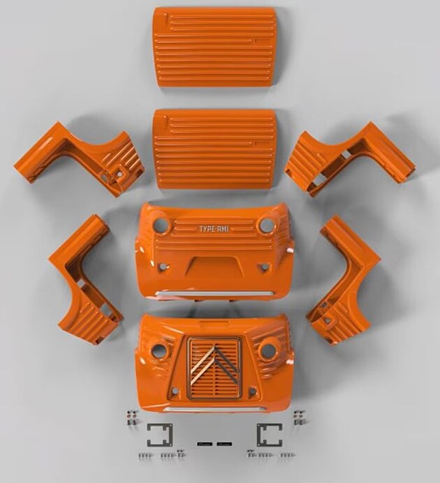 Body kit pro Citroën Ami dává tomuto malému elektrickému modelu klasický vzhled inspirovaný designem dodávky Citroën HY z vlnitého plechu.