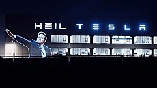 Heil Tesla. Aktivisté v Berlíně promítli Muskovi na továrnu jeho pozdrav![]() |