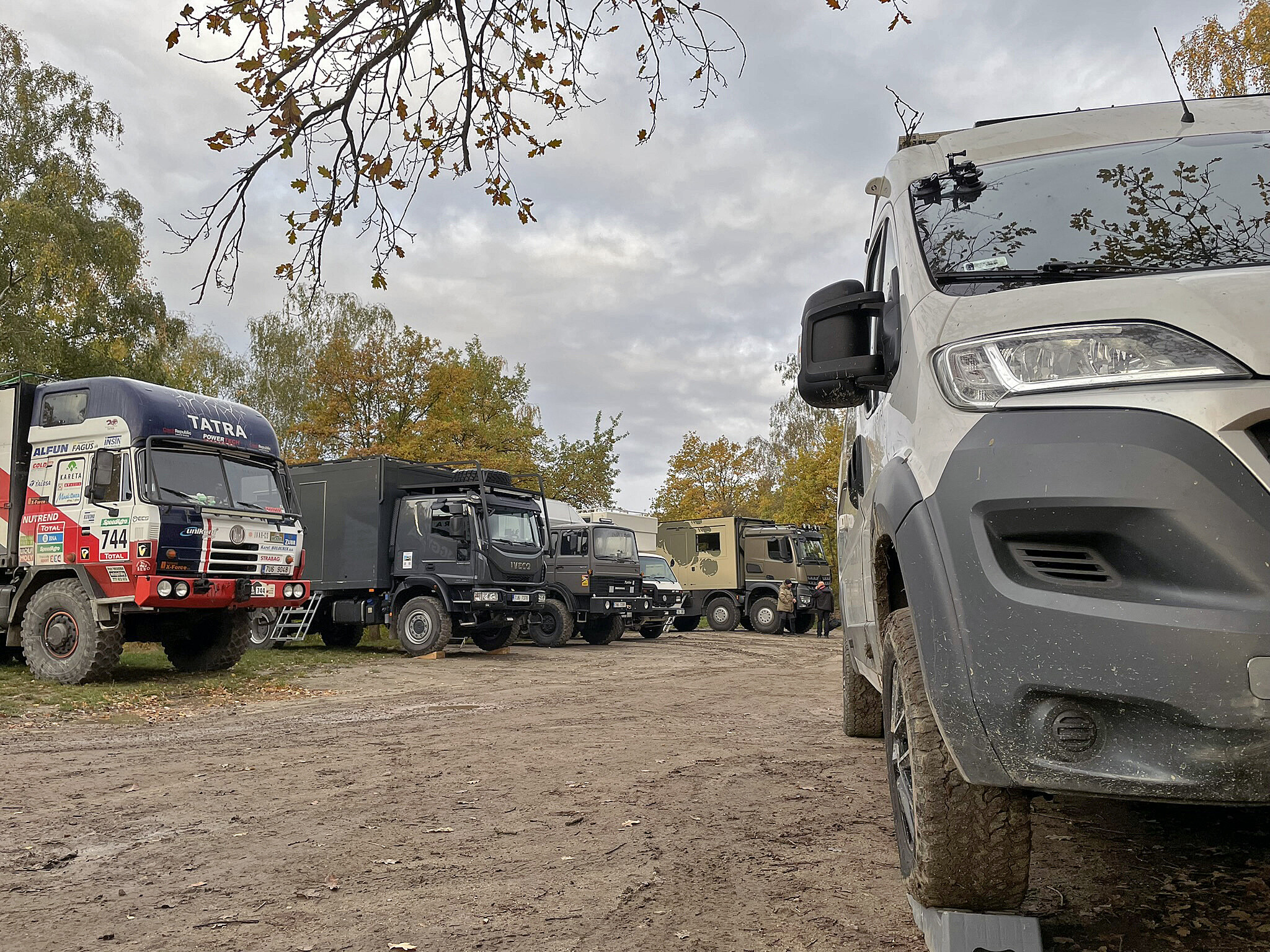 Ve vzduchu voní vlhko a spadané listí. Po deštích je krajina nasáklá vodou. Na rozbahněné polní cestě se kolébá řada náklaďáků. Sunou se do kopce, ne jehož temeni stojí betonový bunkr. Největší stroj v celém pelotonu se rozjíždí. Rozhrne bláto. Všech osm kol expedičního Mercedesu-Benz Arocs tlačí stroj do prudkého úbočí.