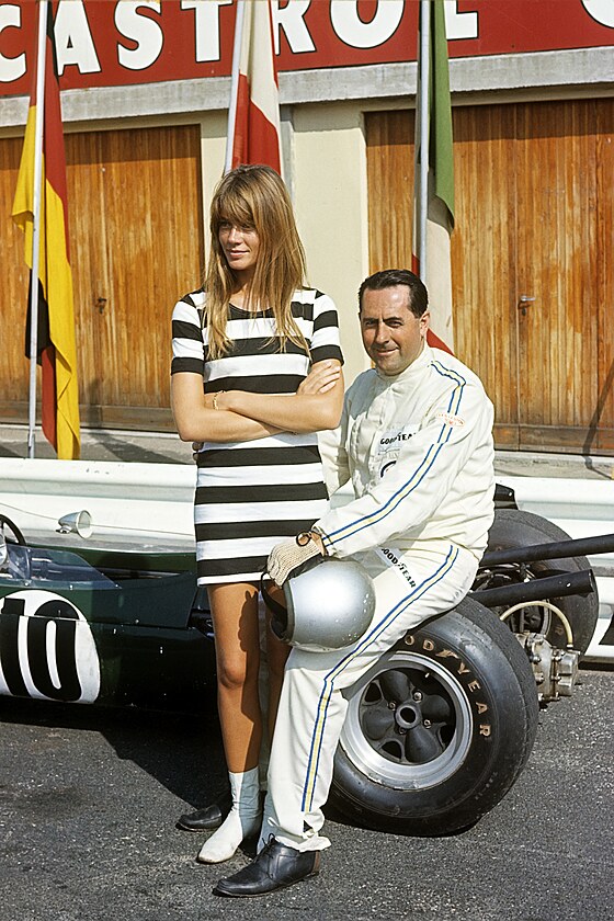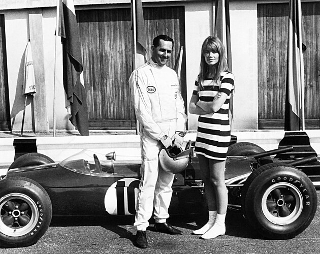 Při natáčení Grand Prix se Hardyová, pohybující se mezi hvězdami hudebního nebe, setkala s trochu jinými celebritami. Na snímku je s legendárním pilotem a šéfem týmu Jackem Brabhamem a jeho vozem Brabham-Repco BT19 na závodním okruhu v Monze.