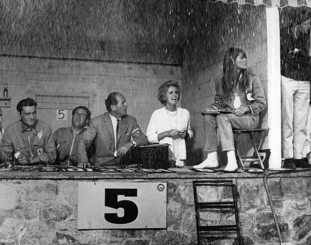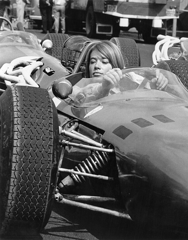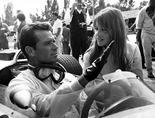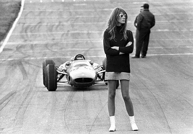 Enzo Fiermonte, Eva Marie Saintová a Francoise Hardyová (zcela vpravo) vyhlížejí z boxů pilota svého týmu. Samozřejmě jen ve scéně z filmu Grand Prix.