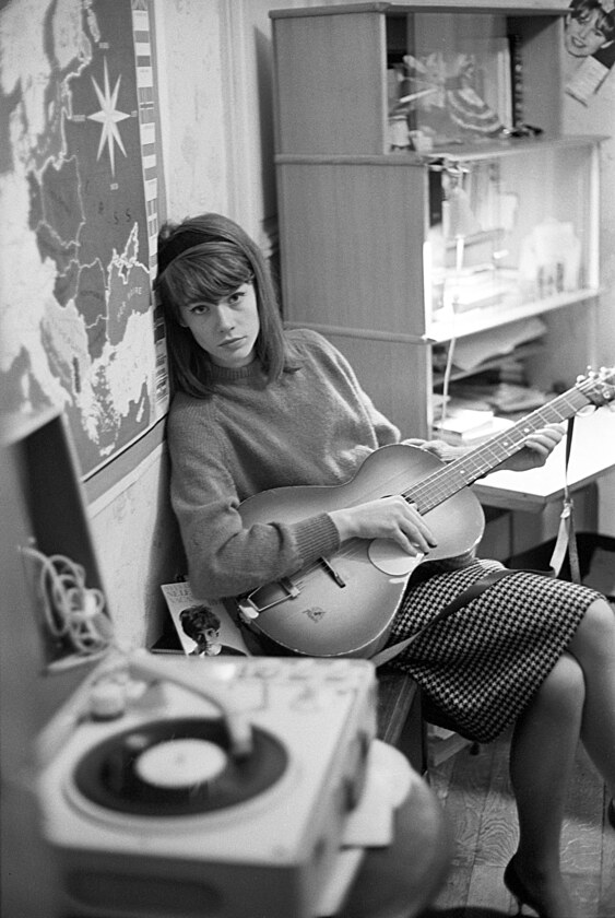 Françoise Madeleine Hardyová přišla na svět 17. ledna 1944 v Němci okupované Paříži. Narodila se během náletu, při němž explodovala okna nemocnice. S tím údajně souviselo její neobvyklé chování, byla temperamentní a bojácná zároveň. Vyrůstala ve skromném bytě na Rue d’Aumale, v 9. pařížském obvodu. V 16 letech odmaturovala a otec, kterého viděla párkrát za rok, se jí zeptal, co by chtěla jako dárek. Zvolila si kytaru. To se psal rok 1960. Zde je už slavná, v roce 1962 ve svém pařížském bytu. Jak jinak než s kytarou. Zatím si držela image slušné a skromné dívky z lidu, sexuální ikonou se stala o pár let později.