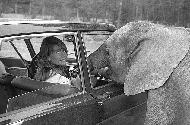 Skutečná hvězda. Novináři Hardyovou sledovali na každém kroku. Zde je ve zvířecím parku ve francouzském Thoiry.