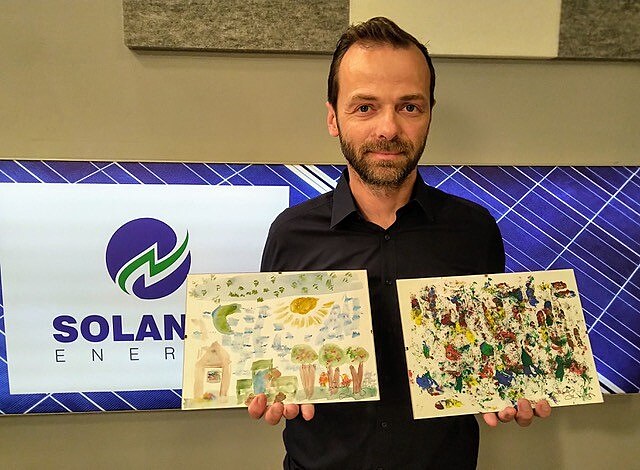 Představitel Viléma Fialy ze Slunečné Lukáš Langmajer věnoval do aukce dva obrazy, na nichž pracoval se svými dětmi.