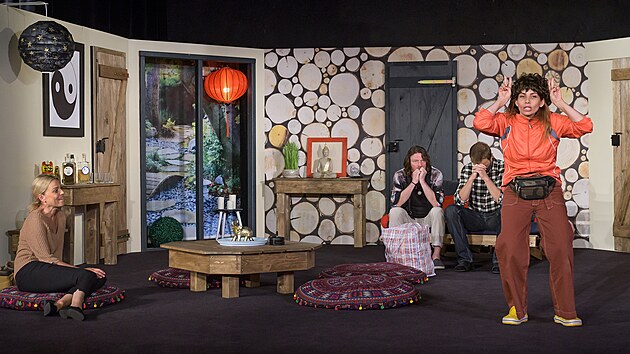 Lucie Zedníčková, Leoš Noha, Lukáš Langmajer a Eva Decastelo v představení A do pyžam!
