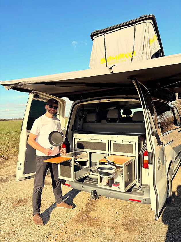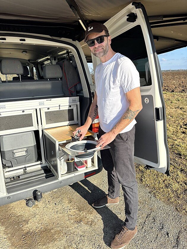 Obytňák si známý herec a cestovatel vybavil vším potřebným na základě svých letitých zkušeností s cestovatelskými auty.