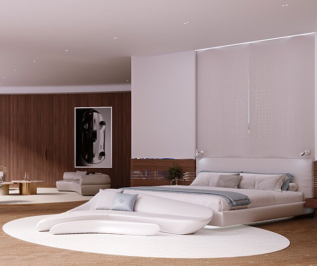 Interiéry rezidencí mají věrně kopírovat zážitek z jízdy v luxusním Mercedesu. Budoucí majitelé se mohou těšit na prvotřídní kůži, dřevěné obklady a barevnou paletu založenou na černé a stříbrné barvě.