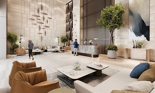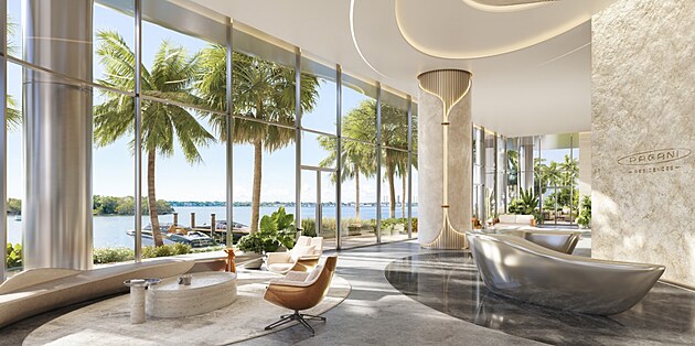 Vizualizace lobby a soukromého salonku v Pagani Residences Miami