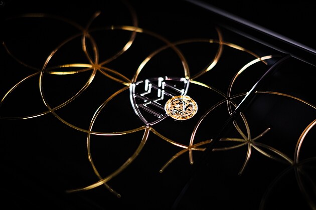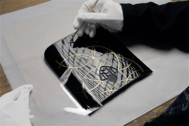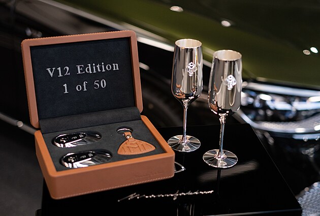 Intarzie, vyrobená z 24karátového zlata, má jemnou rytinu ve tvaru písmene V, inspirovanou uspořádáním válců motoru V12.