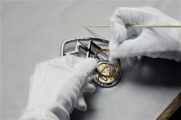 Dvojitý emblém Maybach ve tvaru M je doplněn chromovanou a zlatou medailí s výraznou číslicí „12“ jako poctou legendární ozdobě kapoty vozu Maybach Zeppelin DS 8. Zlaté okruží medaile z 24karátového zlata zdobí jemná diamantová rytina.