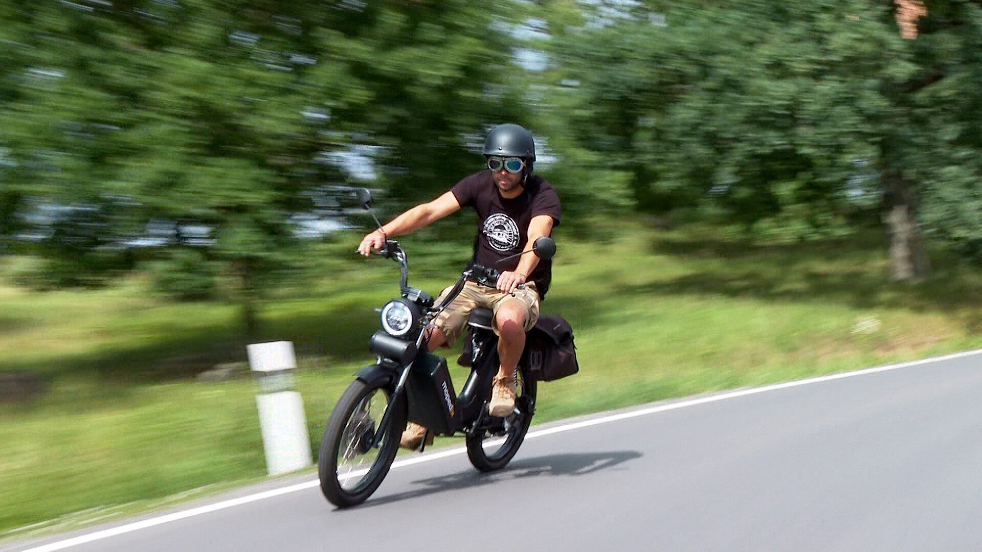 Zaječičtí se právě vrátili z expedice po Sardinii. Na motorkářském ostrově doháněli na svých bzučících strojích, kde do kopce motoru pomáháte šlapáním, mastňáky na cestovních endurech a sklízeli údivné pohledy, aby je v klesání neohroženě drželi za sebou. „Šampionem se může stát každej. Stačí si najít disciplínu, o který nikdo neví,“ je motto uvozující internetové stránky Mopedix, to mluví za vše. „Změnil nám život. Moped. Stroj s benzínovým motorem a pedálama. Změnil život nejen nám.“ A cena? „Za poslední půlrok jsme museli přepracovat všechny naše kalkulace, teď jsme s cenou mezi 120 a 130 tisíci,“ upřesňuje Melichar.