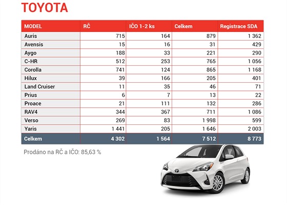 Nad 50 procent privátních registrací podle SDA se loni dostalo jen pár značek – Suzuki (to absolutně vede s 67,60 %), Dacia, Honda, Mazda a Toyota. Právě té se daří toto procento držet dlouhodobě vysoké. Měřeno naší metodikou se k jednotlivým zákazníkům dostalo víc než 85 procent všech tuzemských prodejů značky.