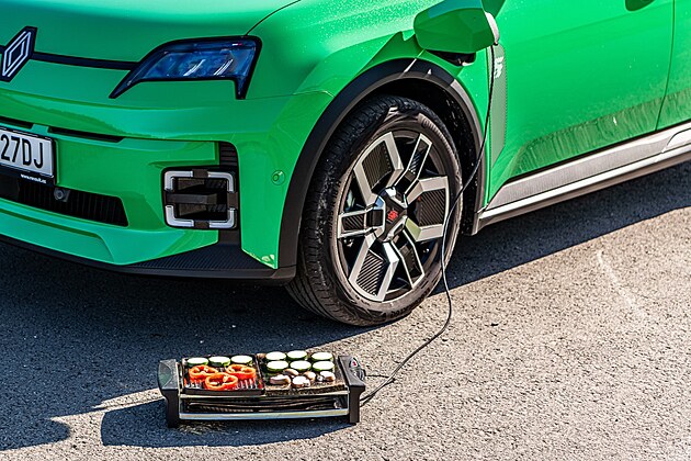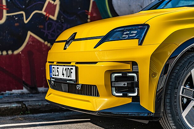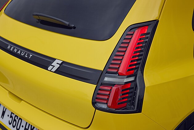 Tam, kde byl na původním Renaultu 5 přívod vzduchu, má novinka plastový kryt, pod kterým po přiblížení řidiče k autu rozsvícené LED proužky ve tvaru číslice 5 ukazují úroveň nabití baterie.