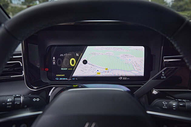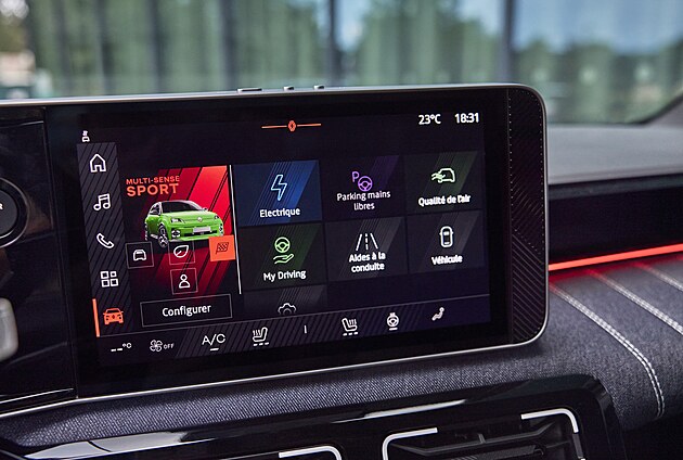 Model R5 se uvnitř znatelně liší od ostatních vozů Renault, například horizontálním, nikoli vertikálním displejem infotainmentu. Systém od Googlu funguje velmi dobře a ovládání je evidentně dobře promyšlené.