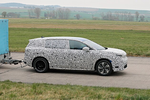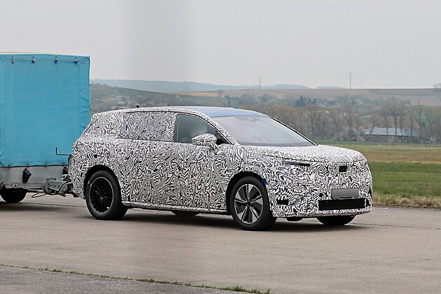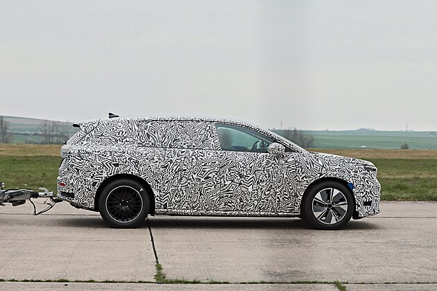 Špionážní snímky prototypu sedmimístného elektrického SUV Škody vycházejícího ze studie Vision 7S.