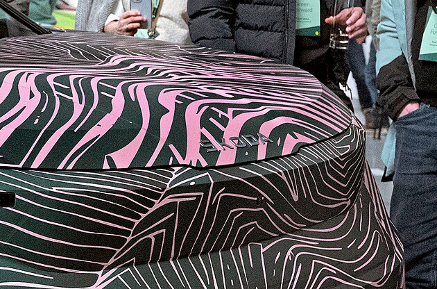 Do interiéru jsme zatím směli pouze nahlédnout, ale kvůli důsledným polepům jsme toho stejně zatím mnoho neviděli. Jasné je horizontální členění a na výšku postavený středový displej, to je v podání Škodovky průlomová – a odvážná – novinka.