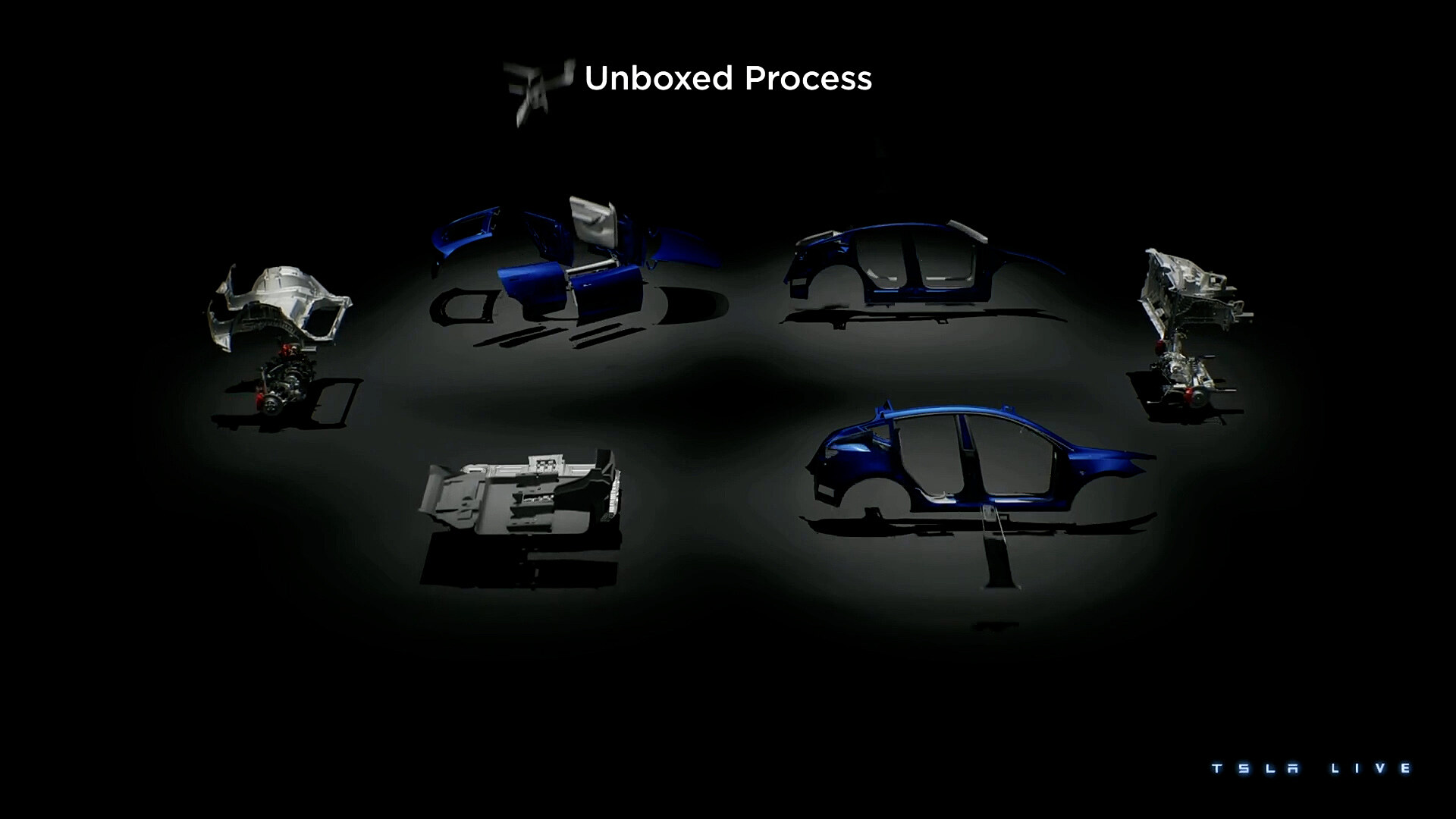 Tesla navíc zcela přehodnotila výrobní proces, aby se stal jednodušším a mohli ho snadněji provádět i roboti. Ten se jmenuje „Unboxed Vehicle“ (rozbalené vozidlo) a znamená, že různé komponenty, například celá levá strana, pravá strana auta, přední, zadní část i platforma, jsou již kompletně smontovány a teprve poté vzájemně spojeny. Zabraňuje se tak tomu, aby se díly musely montovat vícekrát, jak je tomu nyní v případě dveří. Do jinak vcelku kompletního auta se dnes také usazuje palubní deska skrz dveřní otvory, což dělá výrobní proces v očích Tesly zbytečně složitým. Některé části interiéru, jako jsou přední sedadla, jsou již navíc namontována, ještě než se podlaha spojí se zbytkem auta.