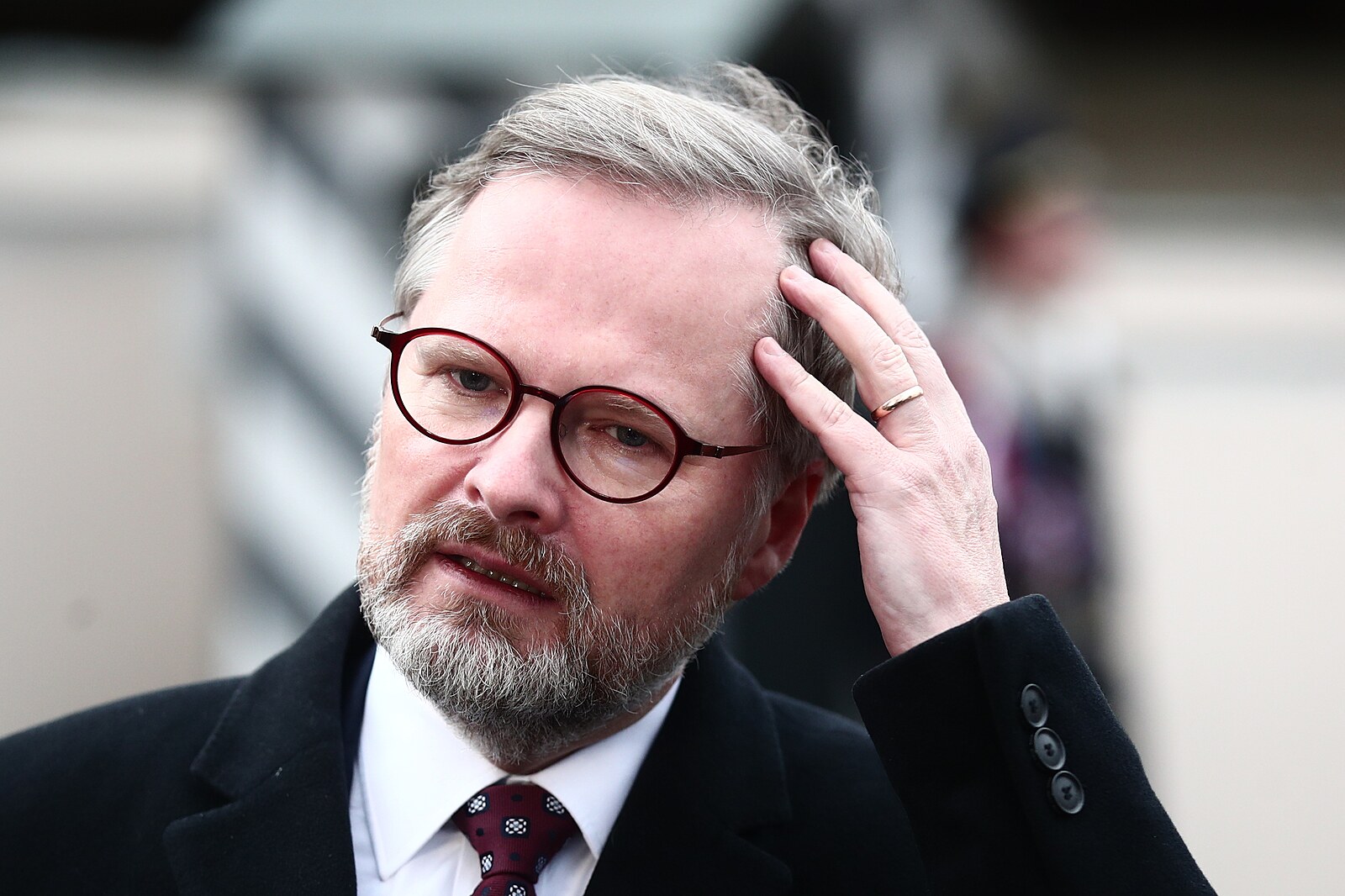 Premiér Petr Fiala po novoročním obědě v Lánech u prezidenta Miloše Zemana. (2. ledna 2022)