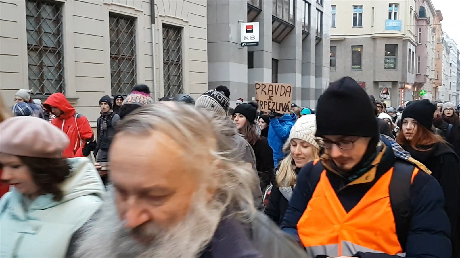 Lidé nesli transparenty s portréty Kuciaka a Kušnírové a nápisem „Nezapomeneme“ ve slovenštině, tedy „Nezabudneme“ nebo nápisy „Kulkou pravdu nezabiješ“ nebo „Nebudeme mlčet“.