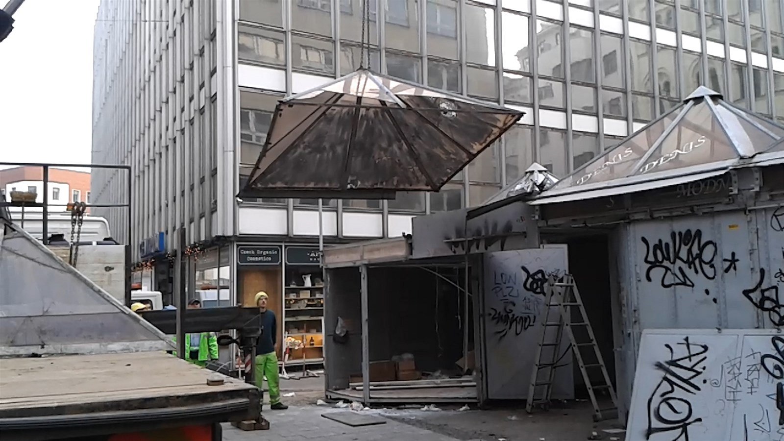 Rozebírání stánků v sobotu neskončilo. Firma najatá radnicí odvezla jeden stánek a z dalšího sundala střechy a dveře. Podle Bartíka bude bourání pokračovat i v neděli. Kauza ale ještě nekončí a bude se jí zabývat policie.