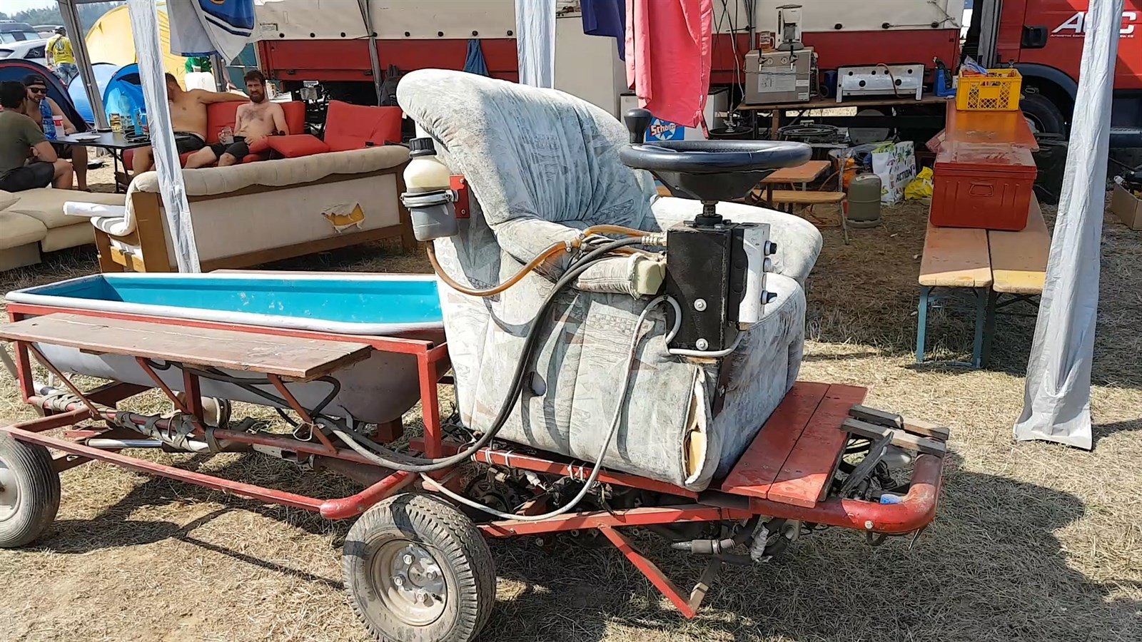 Obdobná horká atmosféra panují i v kempech. Někteří návštěvníci si dopoledne radši hověli ve stínu stanů a kempů a na závody vyrazili až na odpolední kvalifikace, jiní rezignovali a vydají se až na nedělní Velkou cenu.