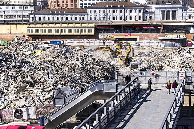 V druhé půlce března zbyly z obchodního centra už jen sutiny. Developerská společnost Crestyl předpokládá, že během dubna odveze veškerou suť.