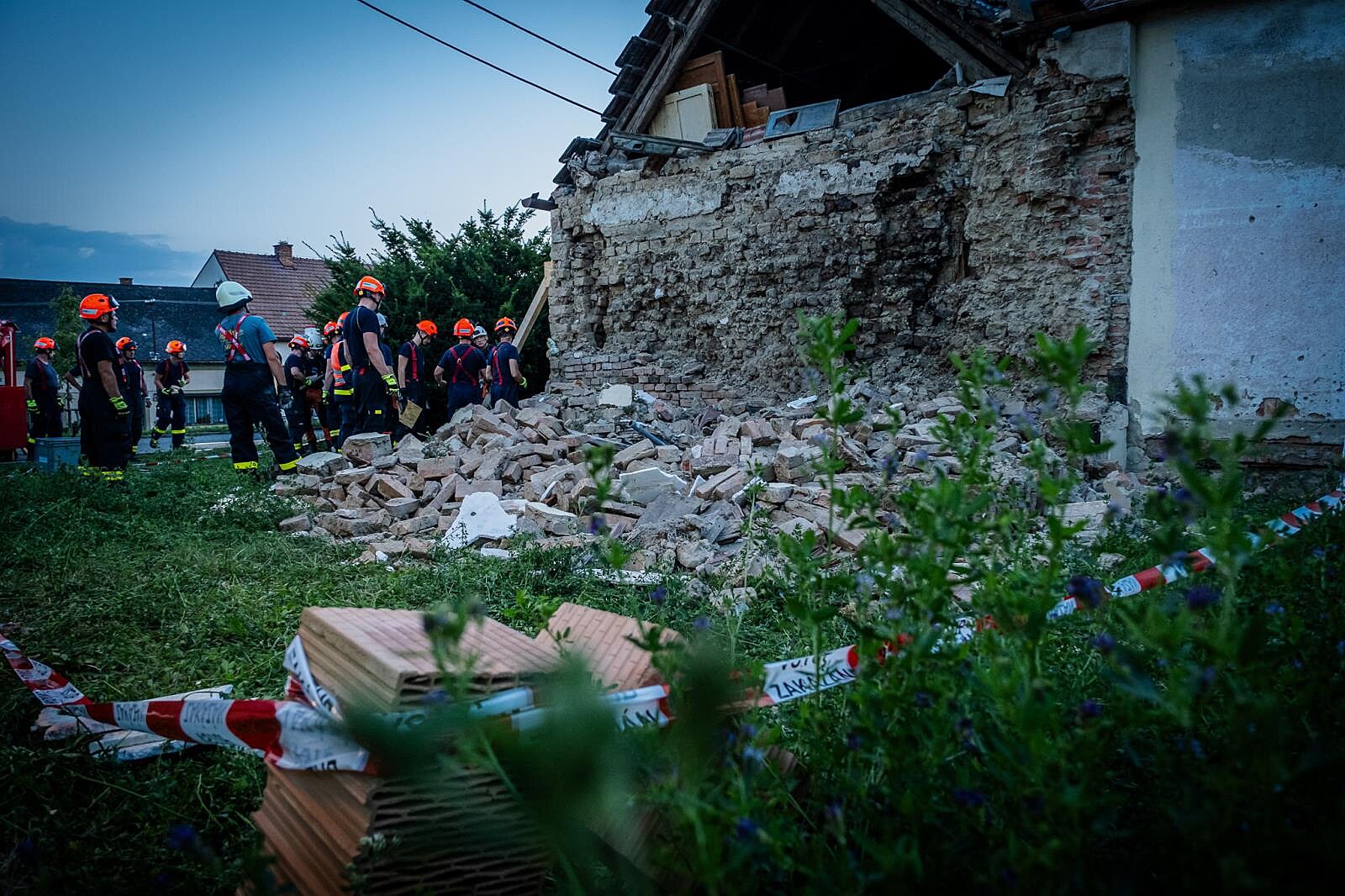 „Kolegové zajistili statikem určenou část domu výdřevou a na závěr pomocí automobilového žebříku štítovou zeď zaplachtovali,“ upřesnil mluvčí hasičů Jaroslav Mikoška. Zásah jednotky ukončily po desáté hodině večer.