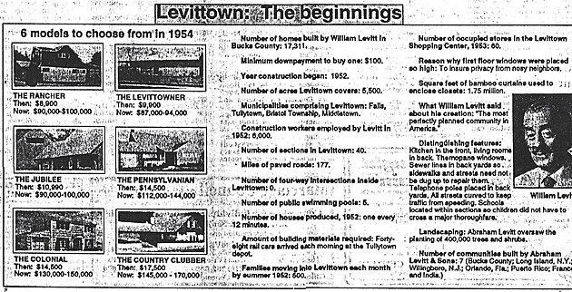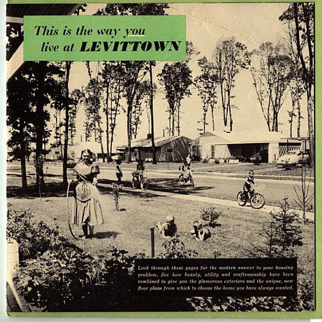 To „dílo“ vznikající na bývalých bramborářských polích se jmenovalo Levittown. Byla to koordinovaná výstavba newyorského předměstí, rozvolněné rezidenční zástavby. Ovšem v naprosto nebývalém měřítku. Ve své době to byl největší developerský projekt na území Spojených států amerických.