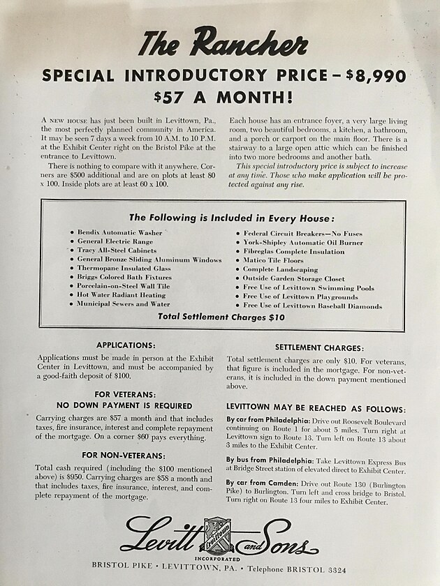 A kromě toho byly domy v Levittownu neuvěřitelně laciné. Pro veterány prakticky nedávalo smysl bydlet v nájmu.