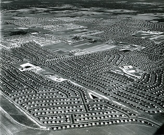 To neuvěřitelně rychle rostoucí předměstí bylo navrženo tak, aby poskytovalo velké množství bydlení v době, kdy byla vysoká poptávka po cenově dostupných rodinných domech. A byla to součást onoho amerického snu, protože umožnila sedmnácti tisícům rodin stát se majiteli domu.