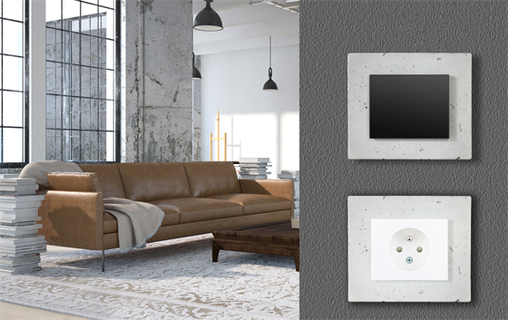 Na stěně může „zmizet“ díky betonu (nebo naopak vyniknout) i vypínač. Speciální beton s organickými vlákny se totiž používá i v originálně pojatých rámečcích vypínačů a zásuvek.