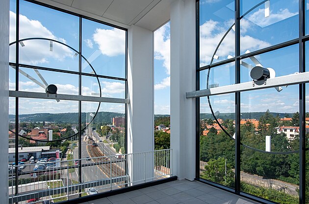 Prvkem, který zaujme na první pohled, jsou dvoje impozantní, v noci podsvícené hodiny, které s průměrem ciferníků přesahujícím čtyři metry patří mezi největší hodiny v Praze. Zajímavým estetickým a zároveň i funkčním řešením je „levitující“ schodiště ve vstupní hale, které díky využití sloupu stabilizujícího podestu se schodišti vytváří pěkný otevřený prostor s iluzí „levitující“ desky.