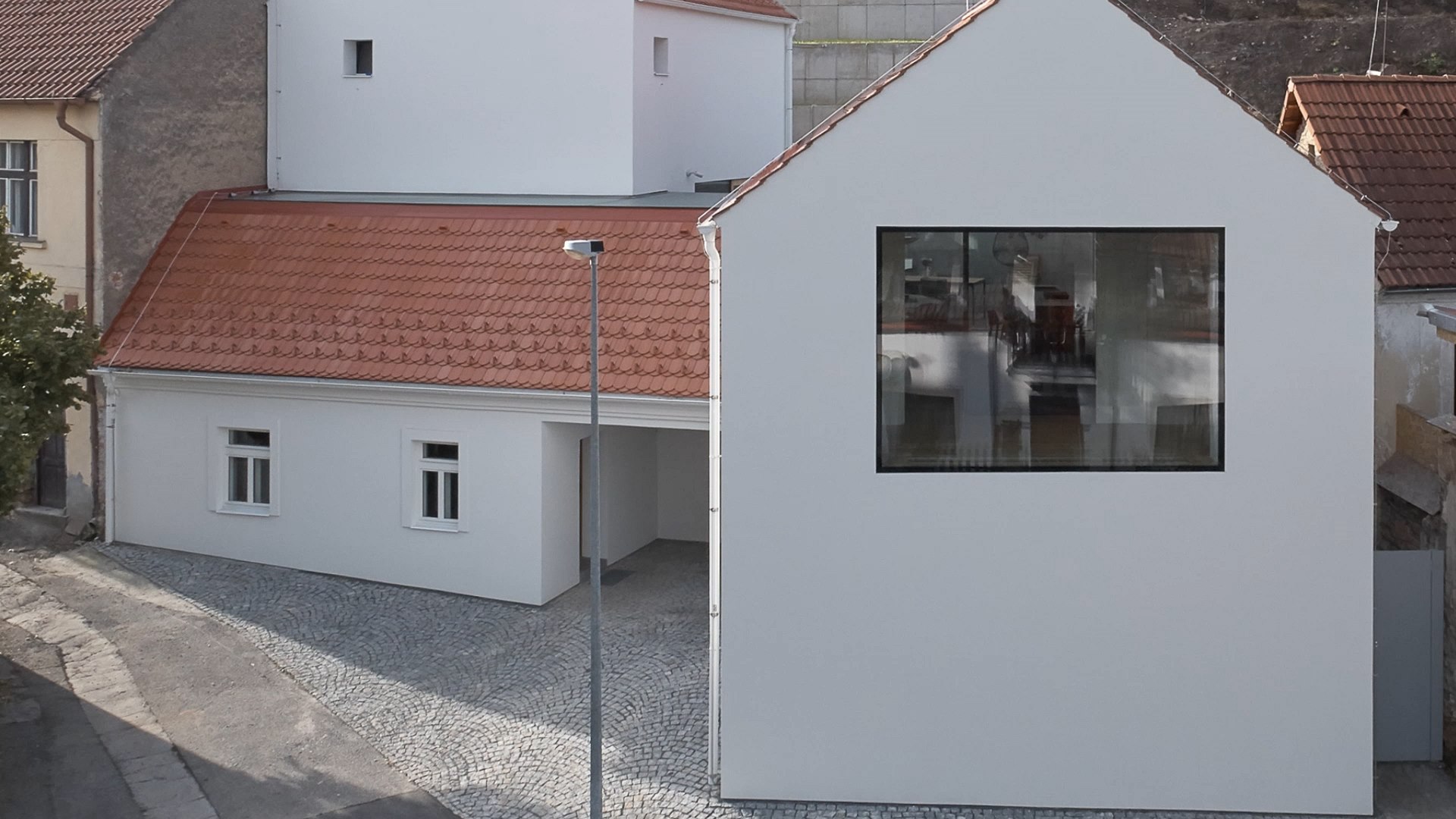 Starou a novou část tak spojuje z vnějšku v celek jednotná barevnost štukové omítky i režná keramická taška na střeše. O stáří jednotlivých částí domu napoví zejména detaily, s původním tvaroslovím lehce kontrastuje současné minimalistické pojetí.