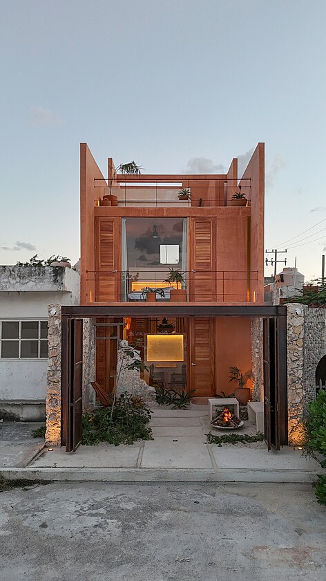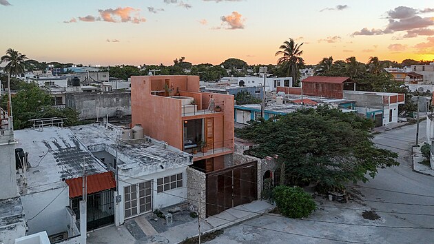 Úzká a podlouhlá parcela stojí v poměrně zahuštěné oblasti. Co se s tím asi tak dá dělat? Vzhledem k tomu, že šlo do budoucna o velmi perspektivní lokalitu, přístavní zónu města Progeso v pro turisty oblíbeném mexickém Yucatánu, hledala se tu netradiční řešení.