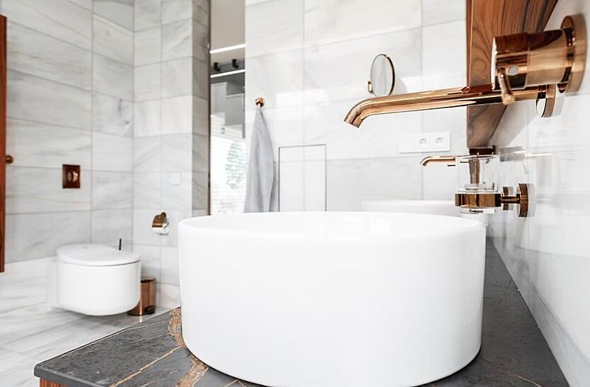 Volně stojící vana představuje sebevědomý přístupu k interiéru a luxus.