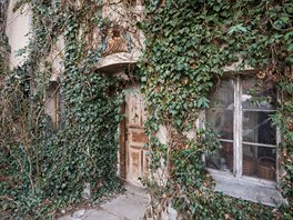 Fasáda sýpky je porostlá břečťanem a nic se na ní neměnilo. Nad dveře si Kateřina akorát pověsila autorskou plastiku. jsou tu stěny obložené přírodní břidlicí. Podlaha je také pořádný originál. Kateřinu baví, jak se širokými mezerami mezi dřevěnými fošnami nese po domě ,dupání‘ psů a koček.