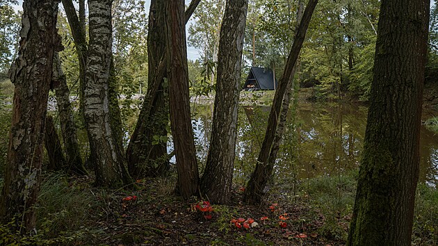 Kamenolom pro stavbu nedaleké vesnice se v dobách socialismu proměnil na rybník, u kterého si Aleš Polák, současný majitel chaty, hrál jako dítě. V roce 1985 se hráz rybníku protrhla a na své obnovení si musel rybník počkat až do roku 2020, kdy se Aleš rozhodl pozemek koupit a přestavět na místo svých splněných snů.