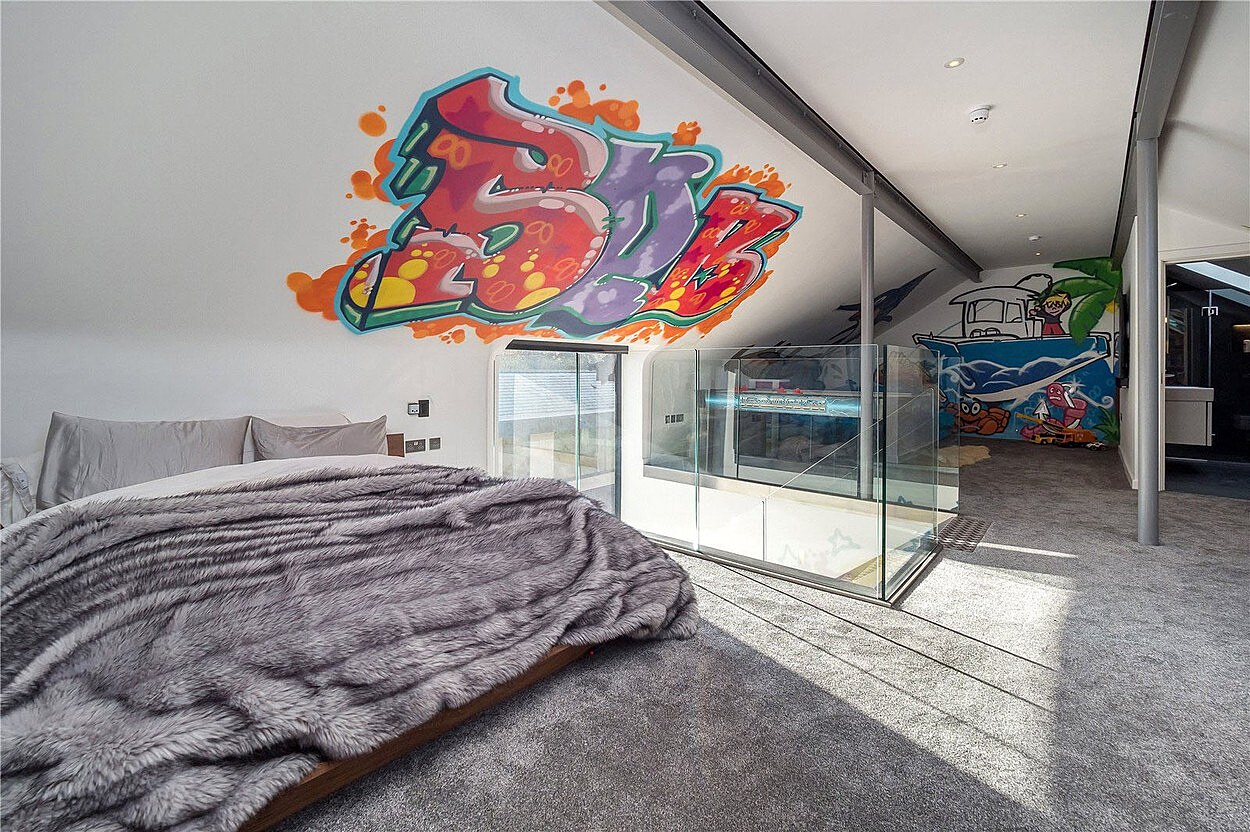 Podkroví zahrnuje ložnici, vlastní koupelnu, obývací pokoj a studijní část.