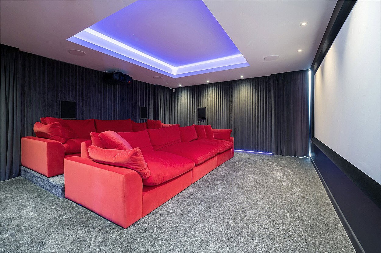 Vila je vybavená kinosálem s plyšovými červenými pohovkami a prostorným plátnem.